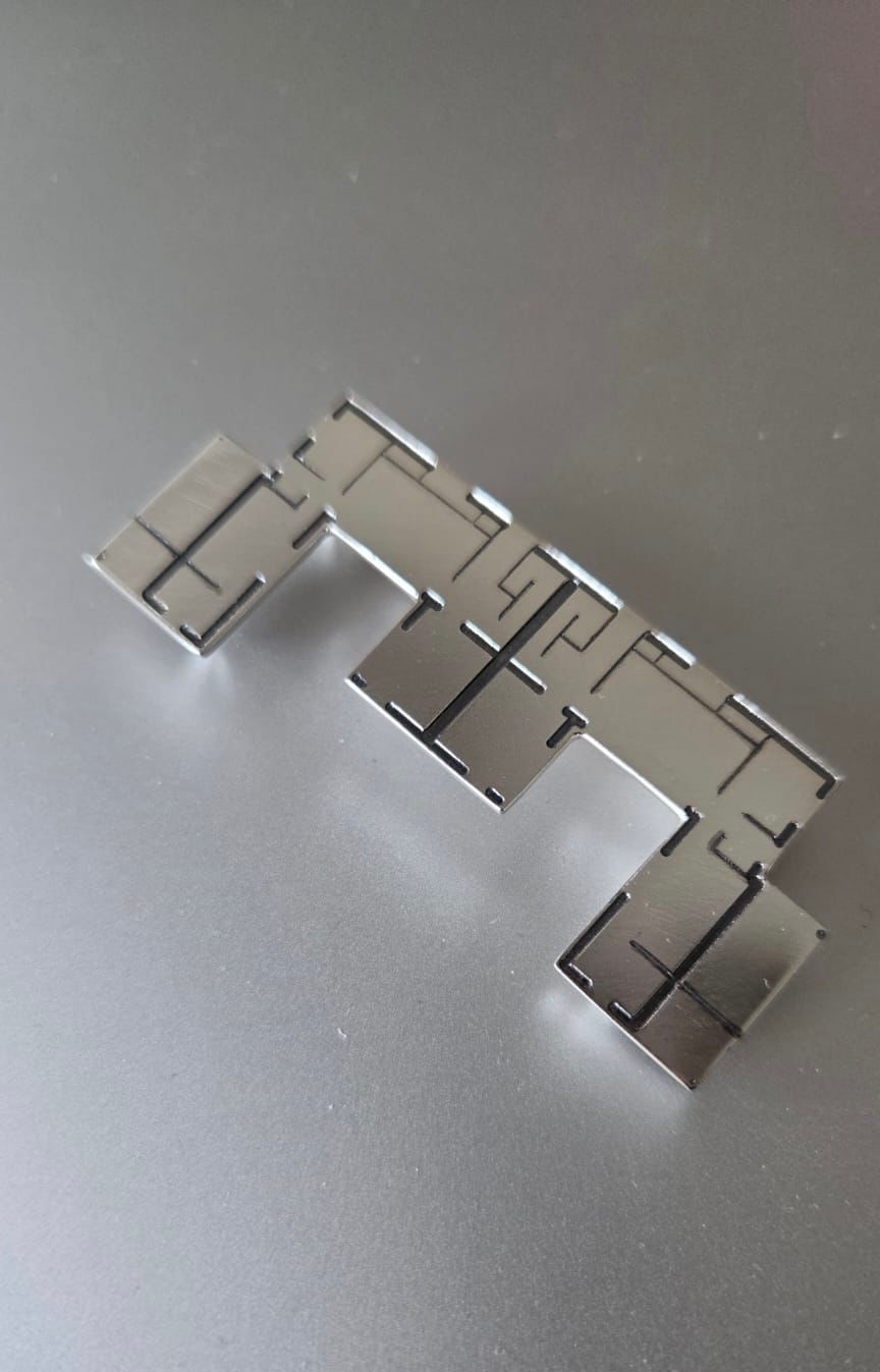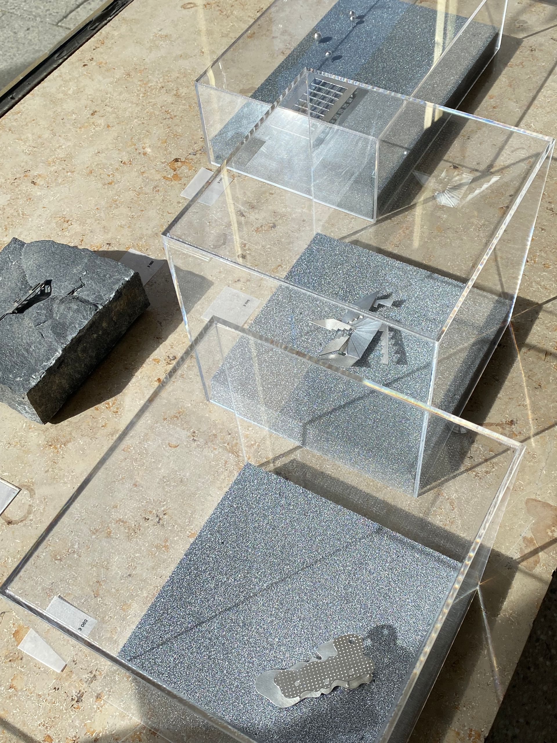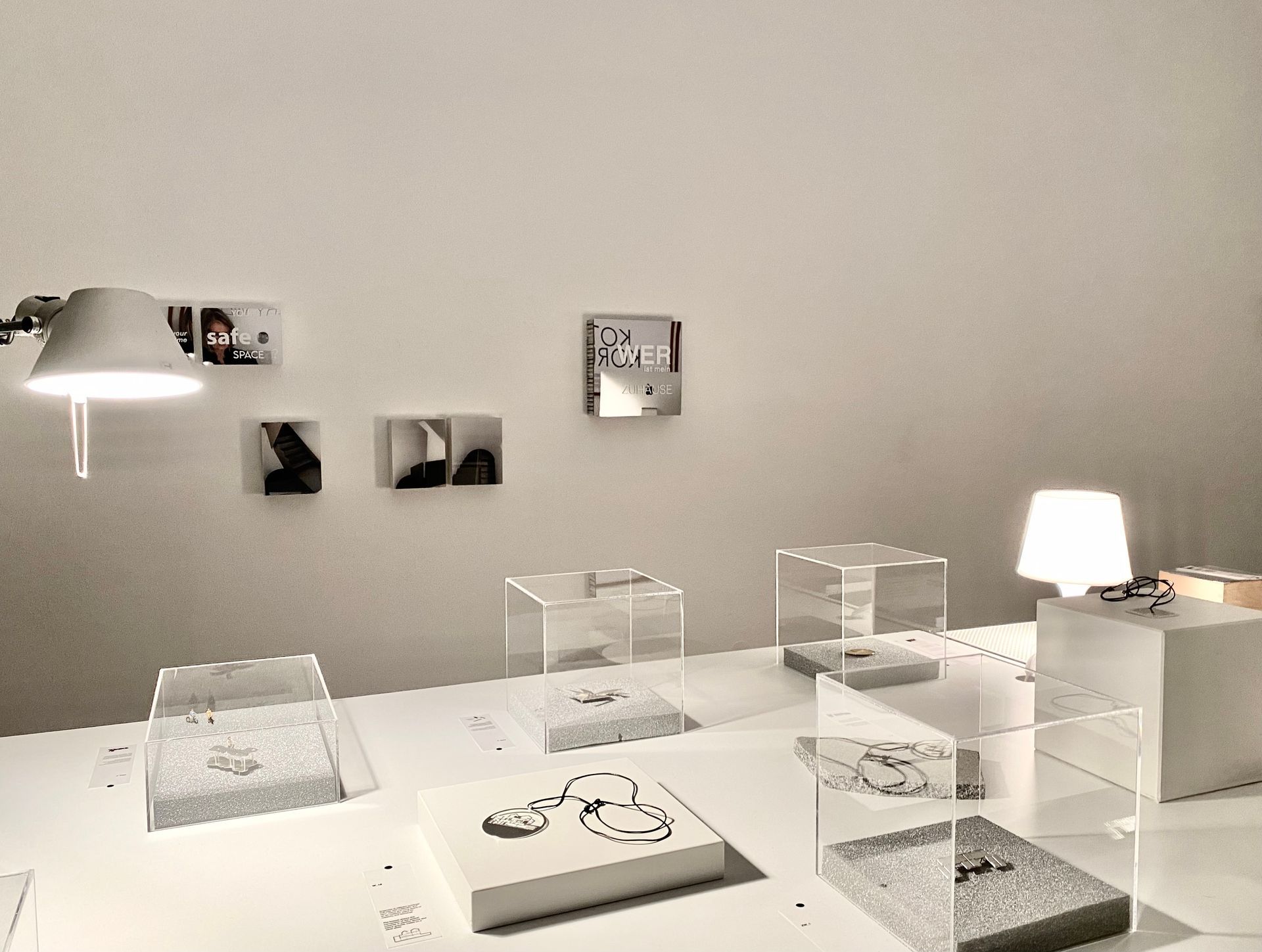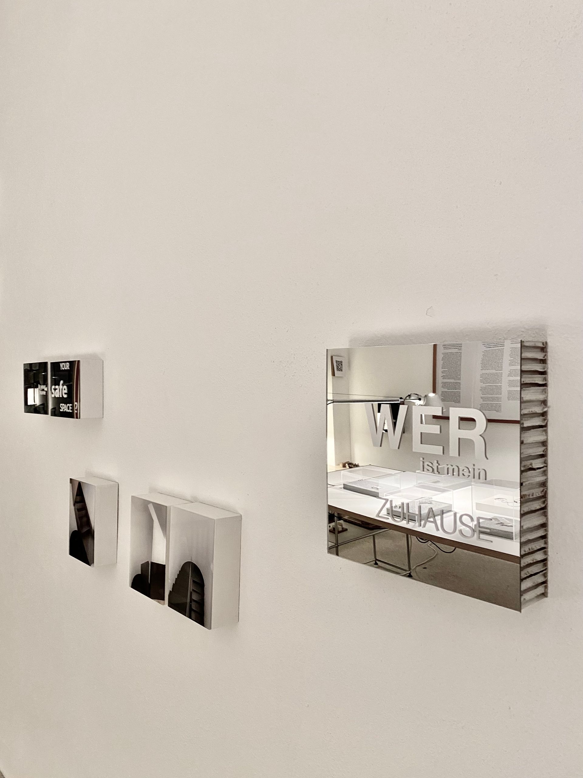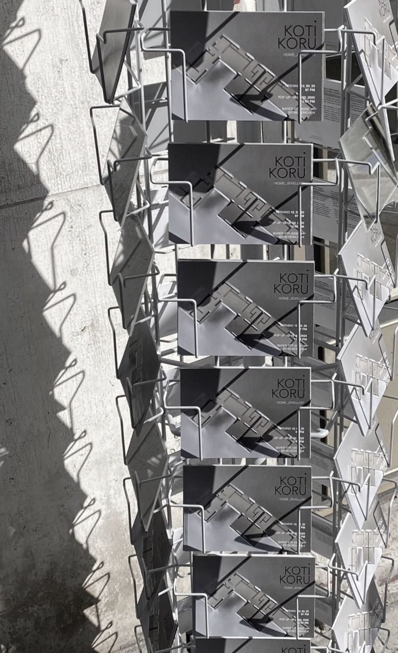 The curated exhibition 'KOTI KORU' by Finnish jewellery designer Anna Heino, unfolds a fascinating symbiosis between jewellery design and architecture by presenting both disciplines on a new scale and context. Houses represent our safe havens, our home. They shape our identity, while jewellery as an intimate companion embodies our values. The wearable jewellery pieces are inspired by drawings of built projects by Gallant Architects. In the transformation into objects, one does not immediately recognize the underlying context, which allows them to be enjoyed as independent works of art. The accompany-ing curated mirror objects by ‚gallant gestaltet‘ aim to initiate an examination of the feeling for home and invite to reflect it.